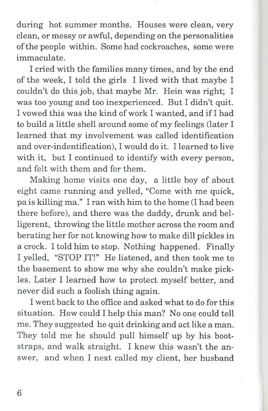 work during the Roosevelt administration as an early outreach social worker,